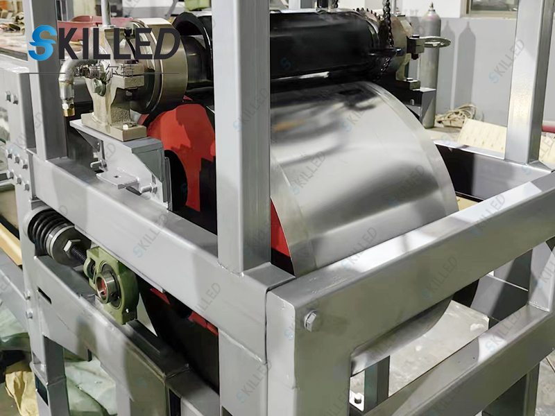 该机由液体变固体粒状,主要是通过造粒模头造粒,采用回转式钢带连续进行,通过喷淋水冷却定型。