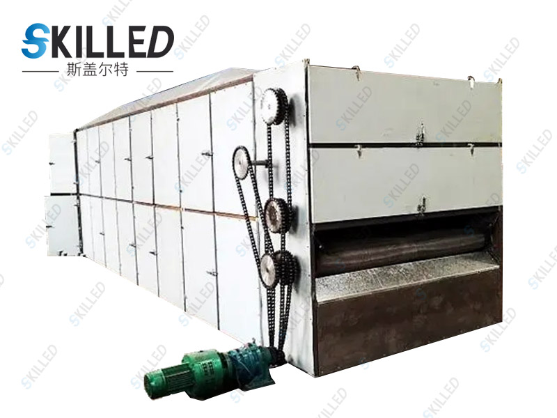 需要烘干的物料经输送机送至干燥机上部网带,物料在干燥设备内通过传动电机及输送网带的作用,自动运行,物料依次由第一层网带落至第二层/第三层网带,在落料过程中,物料...