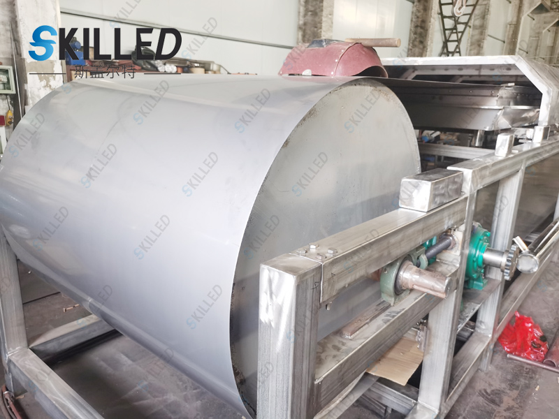 冷却用滚筒刮片机,是一种连续式传导型冷却设备。物料在转鼓外壁上获得以...