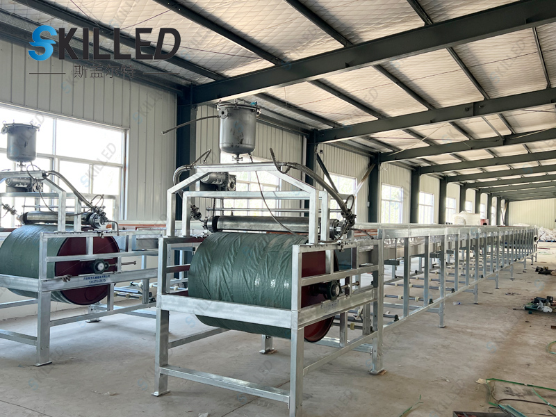 液态的物料流经拌热管道进入设备前端的布料装置(溢流槽),并不断的从溢...