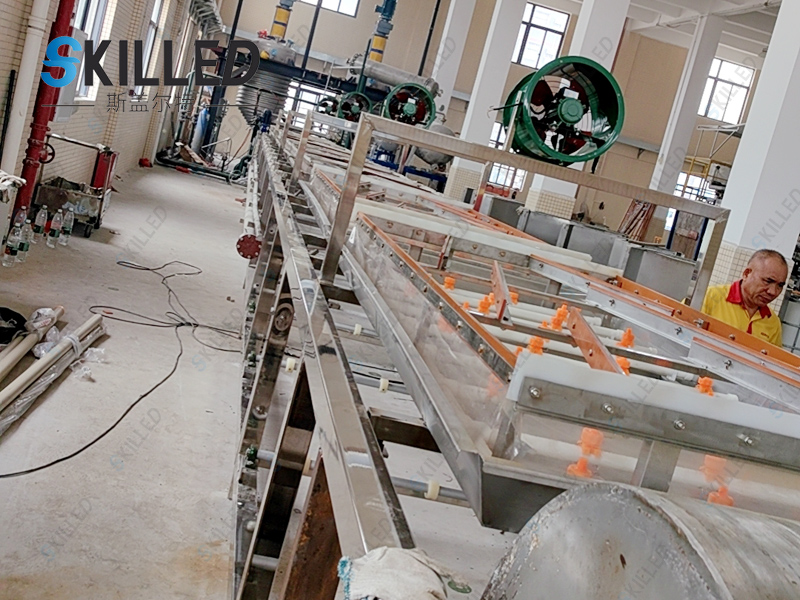 根据加工产品的熔点(凝固点)、物料温度粘度及冷却效果的不同,来选择输送速度及机头转速,以免影响生产能力及粒状质量。