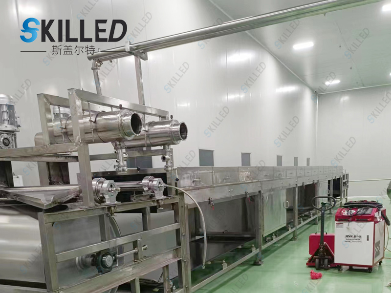 该机由液体变固体粒状,主要是通过造粒模头造粒,采用回转式钢带连续进行,通过喷淋水冷却定型。